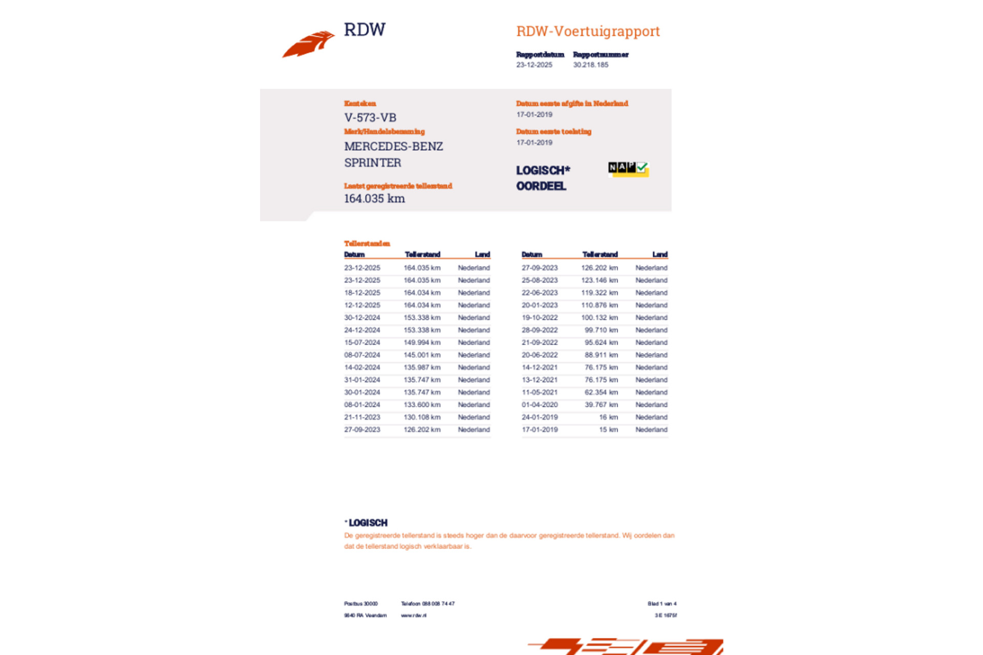 Kilometerstand: 164.118